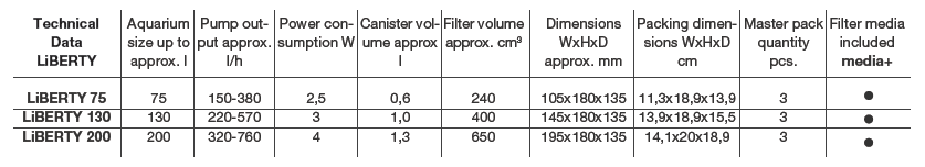 - Direkomendasikan untuk tangki pembiakan (gunakan kartrid 2615270 pada hisapan), ikan mas dan tangki karantina