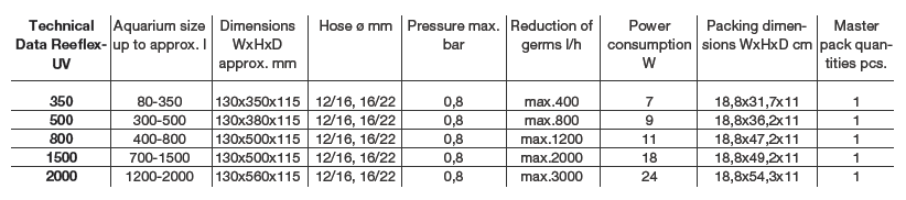 - reeflexUV 2000 = Kapasitas aliran maksimum: 3000 l/jam