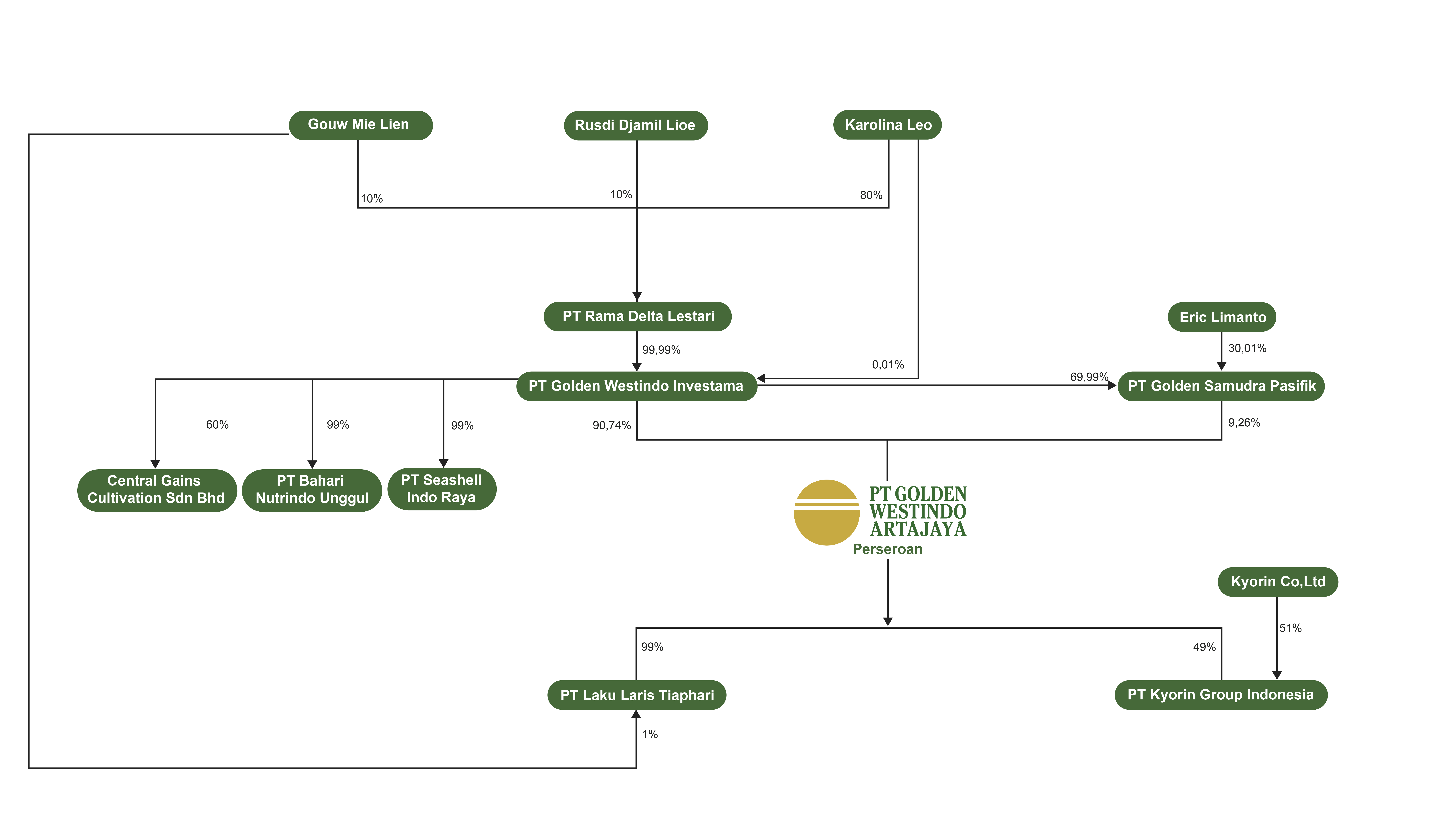 Pihak pengendali dan Ultimate Beneficiary Owner (UBO) dari Perseroan adalah Rusdi Djamil Lioe dan Karolina Leo. Hubungan antara Perseroan dengan pemilik manfaat yaitu pemilik manfaat masing-masing merupakan pemegang saham dan masing-masing merupakan Direksi Perseroan. Karolina Leo selaku pemilik manfaat Perseroan telah memenuhi kriteria sebagaimana diatur dalam Pasal 4 ayat (1) Perpres Nomor 13 Tahun 2018, yaitu: